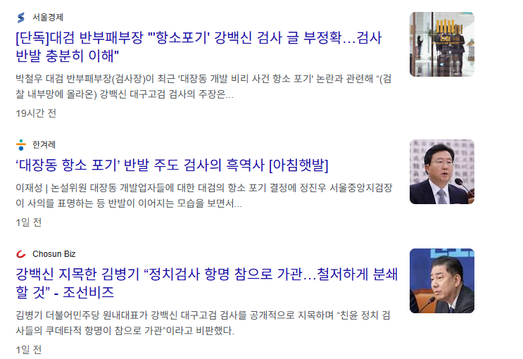 이에 대해 박철우 대검 반부패부장은 강백신 검사 주장은 사실과 다르다면서, 항소 포기 여부는 대검 차장 직무대행인 노만석 검사와 정진우 중앙지검장이 논의하여 결정한 사안이라고 밝혔습니다.