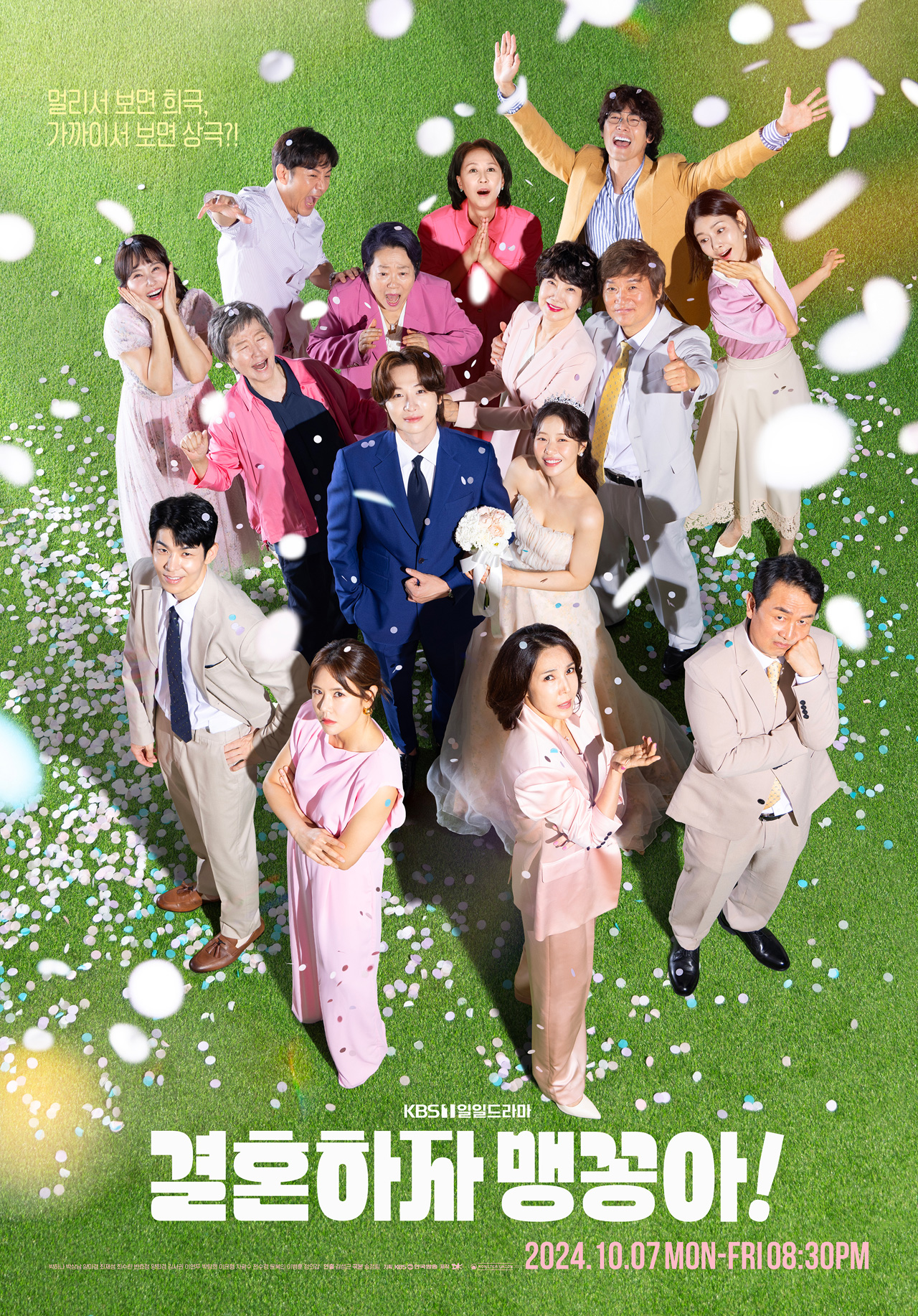 KBS1 일일 드라마 결혼하자 맹꽁아는 2024년 10월 7일부터 방영 중으로 이혼 재혼 졸혼 등 다양한 결혼 형태를 통해 '행복'의 진정한 의미를 묻는 가족 드라마입니다.