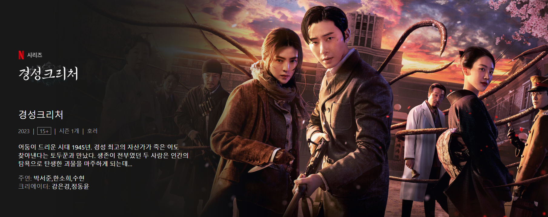넷플릭스 오리지널 드라마 '경성크리처' 시즌 1은 1945년 일제강점기 경성을 배경으로 괴물과 맞서 싸우는 두 청춘의 이야기를 그린 크리처 스릴러였습니다.