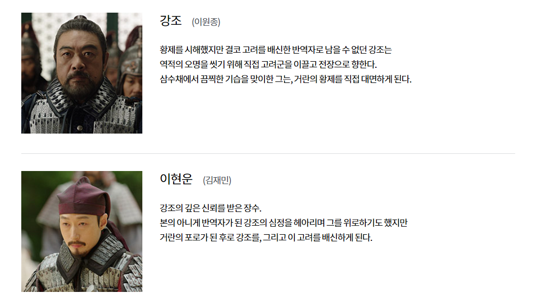 3. 고려 거란 전쟁 출연진 등장인물