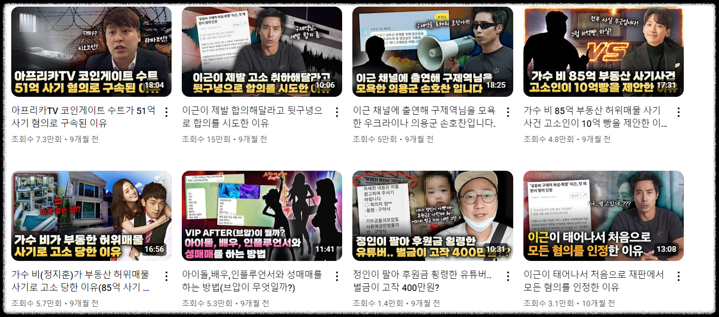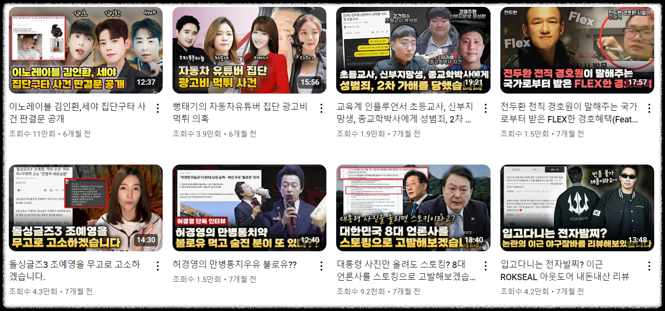 특히 유명인 저격을 통해 이슈를 만들고, 일반인 신상 털이나 사적 제재를 가하는 등 문제 소지가 있는 행동으로 비판받기도 합니다.