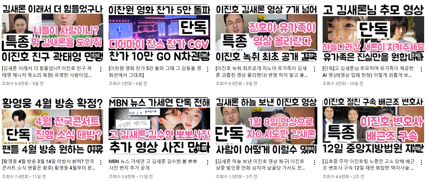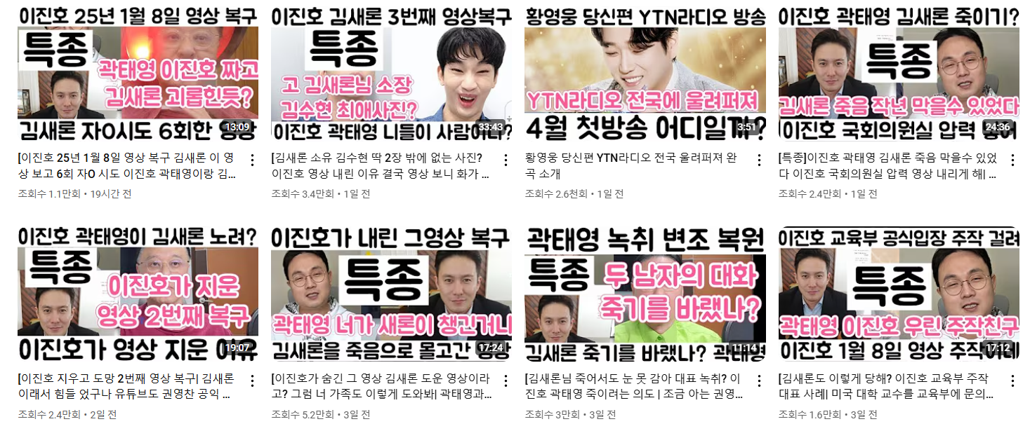 권영찬 교수는 이진호가 비공개 처리한 김새론 관련 영상을 3개 게시하며 이진호가 퍼트린 루머들이 허위사실이라고주장했습니다. 또한 이진호가 연예인에게 심각한 피해를 주는 루머들을 생산한다고 주장했습니다.