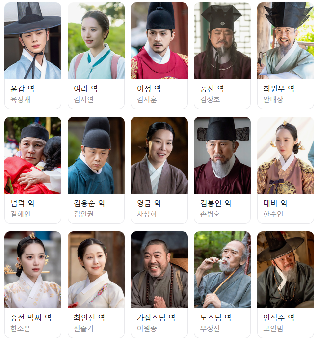 그의 충직한 검서관 윤갑이 죽음에서 돌아온 후 이상한 행동을 보이자 혼란스러워하며, 비극적인 가족사 속에서 억눌러왔던 인간적인 감정들이 폭발하게 됩니다. 이외에도 다양한 배우들이 참여하고 있습니다.
