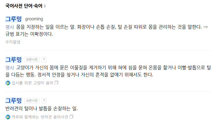 그루밍이라는 단어는 원래 영어의 'groom'에서 유래했습니다. 'groom'은 처음에는 마부나 말을 돌보는 사람을 뜻했으며, 이후 개인의 용모를 단정히 하고 관리하는 행위를 의미하는 단어로 확장되었습니다.