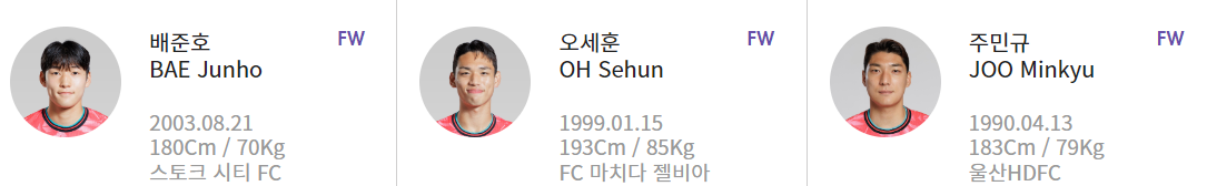 배준호 (스토크 시티 FC), 주민규 (울산 현대)와 오세훈 (마치다 젤비아) 입니다.
