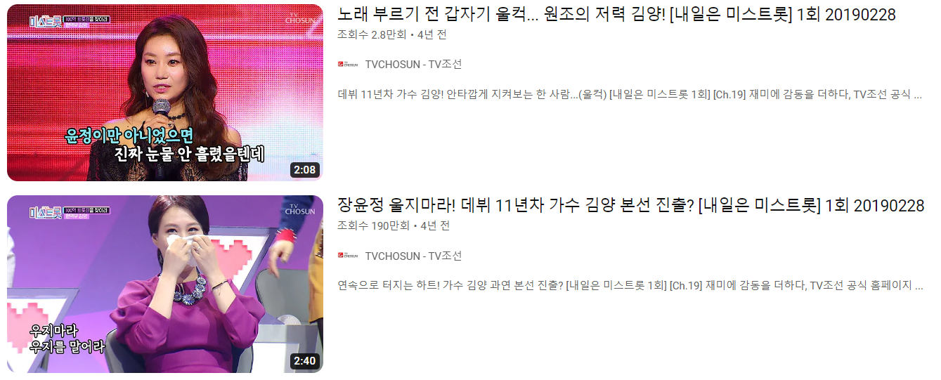 당시 심사위원이였던 장윤정 마스터가 눈물을 보이면서 둘의 사이에 궁금증이 많아지기도 하였습니다. 실제로 장윤정 가수님과 김양은 굉장히 오랜시절부터 알고 지낸 친구였습니다.