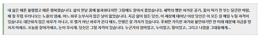 김혜자 배우는 대한민국을 대표하는 국민 배우로서, 압도적인 연기력과 깊이 있는 감정 표현으로 폭넓은 사랑과 존경을 받고 있습니다.
