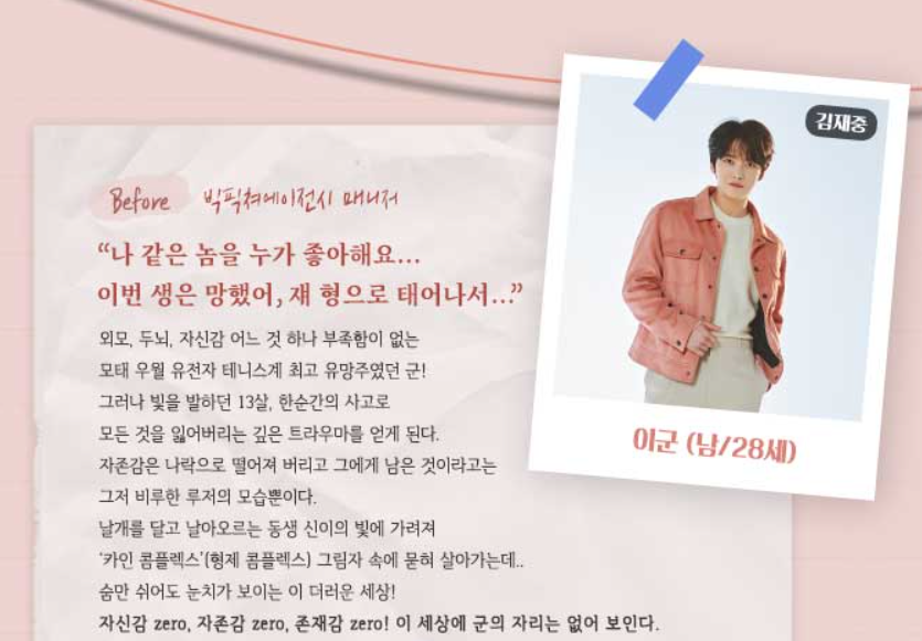 이처럼 이군은 기억 지우개를 통해 자존감 제로의 루저에서 자존감 MAX의 CEO로 변신하며 극적인 변화를 겪는 인물입니다. 김재중 배우가 이러한 이군의 변화를 어떻게 표현해낼지 기대가 됩니다.
