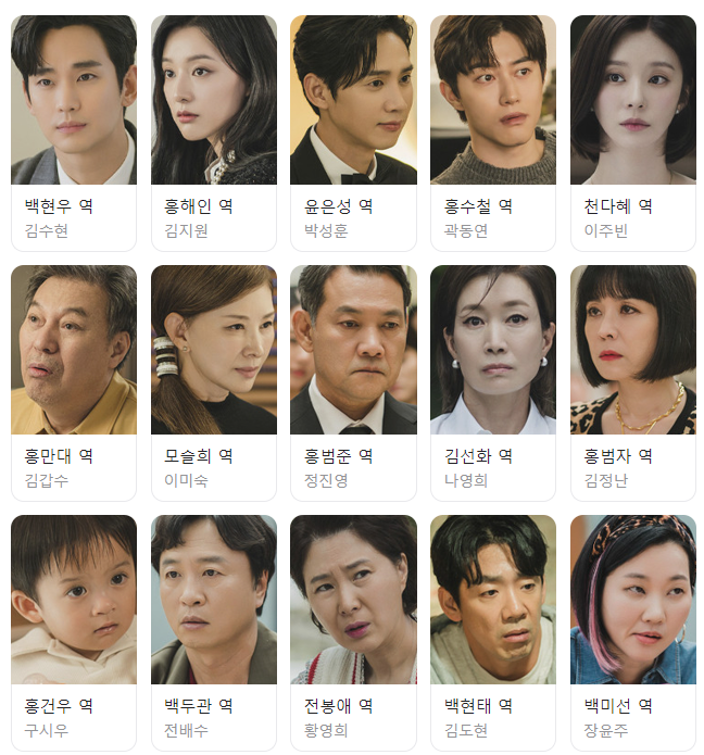 출연자는 김수현, 김지원, 박성훈, 곽동연, 이주빈 배우등이 참여하였습니다. 다음으로 인물관계도와 등장인물등에 대해 살펴보도록 하겠습니다.