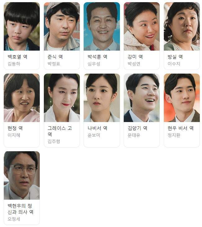 이외에 해인과 현우 가족 및 용두리등의 기타인물들이 참여합니다. 특별출연으로는 오정세, 서예화, 송중기, 남창희, 홍진경, 조세호등이 참여합니다.