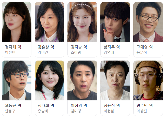상대적으로 강은상은 냉철하고 현실감 있는 캐릭터로, 다해와 김지송과 함께 회사 생활 속에서 절박함과 희망을 동시에 품고 있는 인물입니다. 라미란은 다양한 작품에서 폭넓은 연기력을 입증해온 배우로, 이번 작품에서도 현실감 넘치는 연기로 극의 무게를 잡아주고 있습니다.