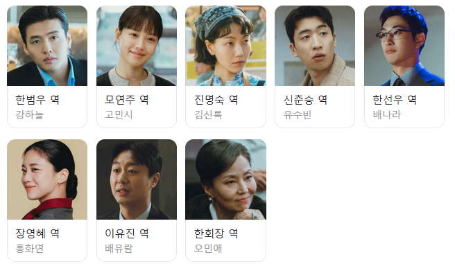 이유진은 한상 '모토'의 직원이자, 한범우의 직속 비서입니다. 범우가 전주로 내려간 뒤 모토에 남아 영혜를 돕는 척하지만, 회사를 지키려는 현실과 범우를 향한 의리 사이에서 줄타기하는 인물입니다. 기회가 온다면 누구보다 빠르게 움직일 준비가 된 유진이 앞으로 어떤 선택을 하게 될지 지켜보는 것도 흥미로울 것입니다.