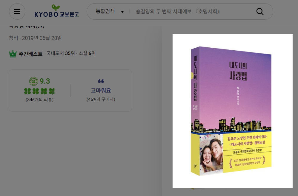 원작도 소개해 드리도록 하겠습니다. 섬세하고 대담한 필치로 퀴어 문학의 새로운 장을 연 박상영 작가의 '대도시의 사랑법'은 젊은 세대의 사랑과 이별, 성장을 솔직하고 감동적으로 그려낸 작품입니다.