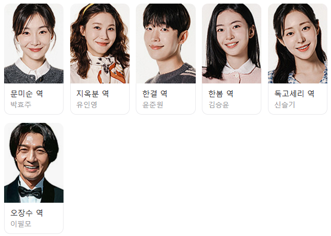 다음으로 드라마에 등장하는 주요 인물들을 정리하여 소개해 드립니다.