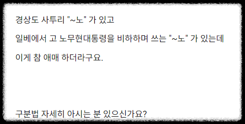 유사한 사례로 과거 인터넷에서 유행했던 '-노'는 그 기원이 명확하지 않아 논란이 되었습니다. 일부는 단순한 사투리의 변형으로 사용했지만, 일베에서 널리 사용되었다는 점 때문에 '-노' 사용자는 종종 일베 회원으로 오해받았습니다.