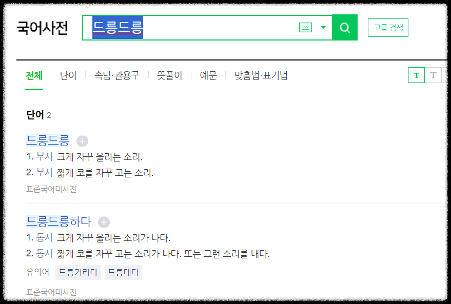 결론적으로 드릉드릉은 국립국어원 표준국어대사전에 등재된 표준어로, 혐오의 의미가 없습니다.