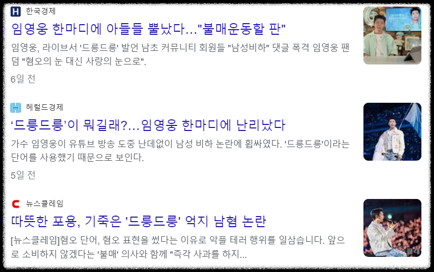 일부 여성 커뮤니티에서 남성 비하 용어로 사용되는 경우가 있어, 임영웅 씨의 발언이 부적절했다는 비판이 제기되었습니다. 과연 사실일까요?