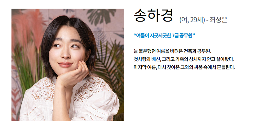 줄거리를 자세히 보면, 주인공 백도하(이재욱 분)는 어린 시절 부모님의 이혼으로 쌍둥이 형과는 떨어져 미국에서 성장했습니다. 하지만 그는 매년 여름방학 21일 동안 한국을 방문해 옆집에 사는 송하경(최성은 분)과 시간을 보내며 설레는 기억을 쌓아갑니다. 반면 송하경은 여름을 싫어하는 인물로, 건축직 공무원이며 도하와는 어렸을 적부터 티격태격해 온 사이입니다.