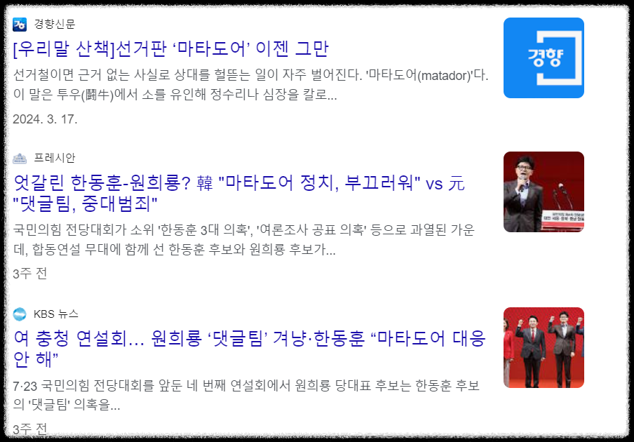 마타도어는 현대 한국 사회에서 자주 언급되는 단어입니다. 특히 정치 분야에서 들어보신 분들이 많이 계실텐데 무슨 뜻인지 잘 모르시는 분들이 많습니다.