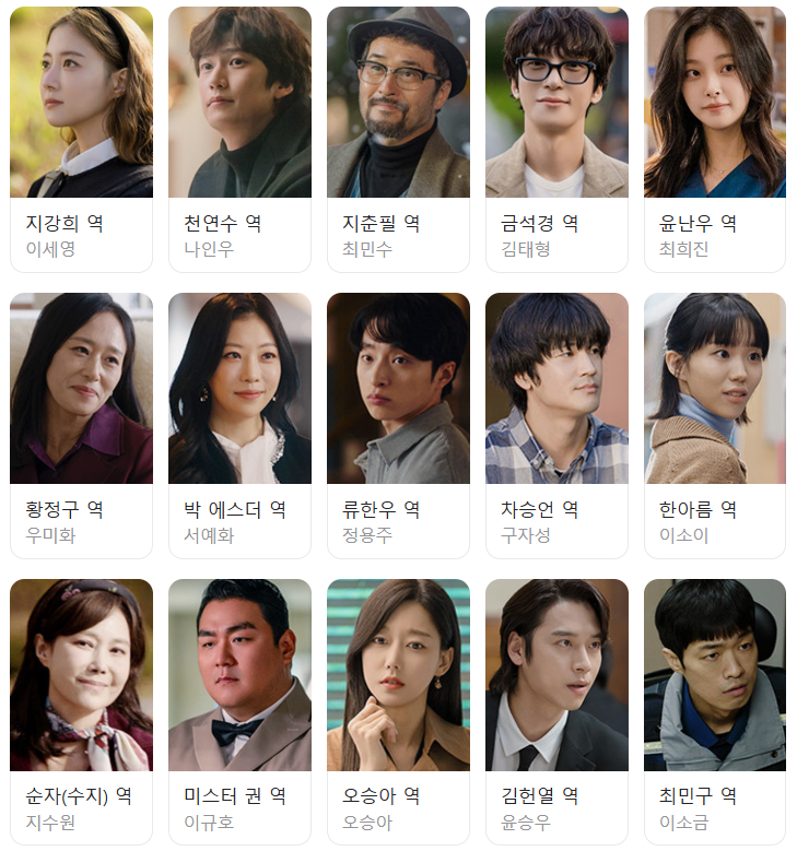 최민수와 지수원은 영화 사랑하기 좋은 날 이후 30년 만에 재회하고 있습니다. 다음으로 주요 등장 인물을 살펴보도록 하겠습니다.
