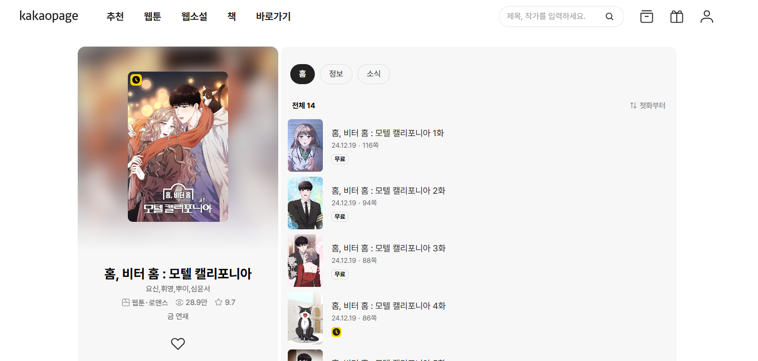 '홈, 비터 홈'은 카카오페이지에서 연재되었던 로맨스 웹소설로, 작은 마을의 모텔을 배경으로 청춘들의 사랑과 삶을 감동적으로 그려낸 작품입니다.