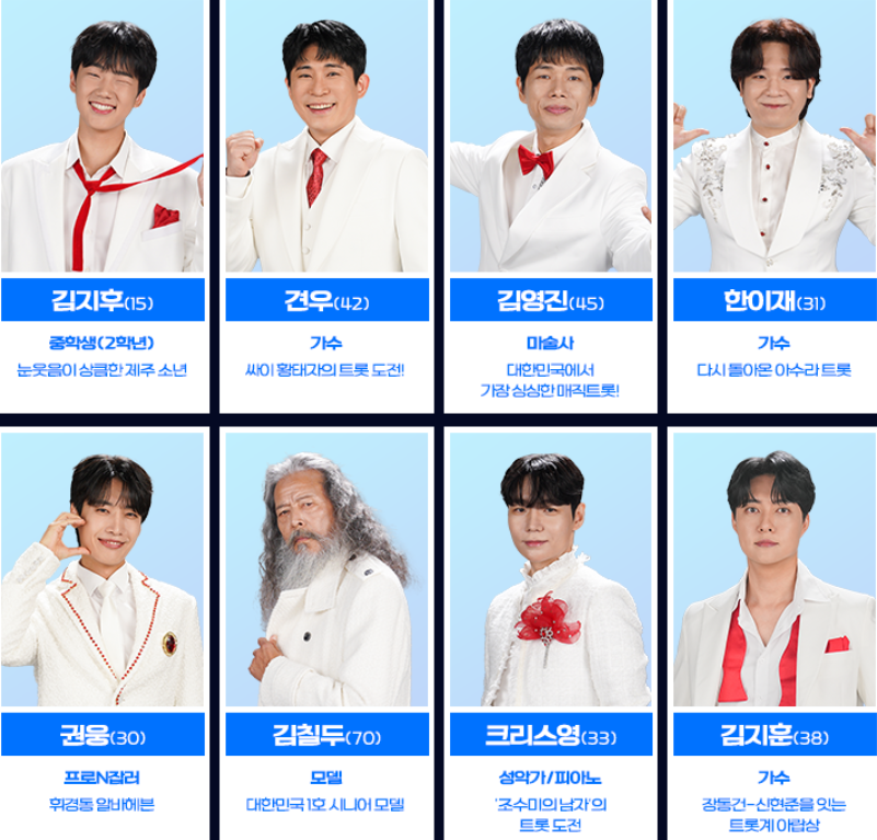 개인적으로 현역가왕 시즌1 여자편을 처음부터 끝까지 모두 시청해 보았습니다. 그런데 이번에 남자편이 곧시작된다는 소식이 저를 설레게 하였습니다. 이번 글에서 현역가왕2 남자편 참가자