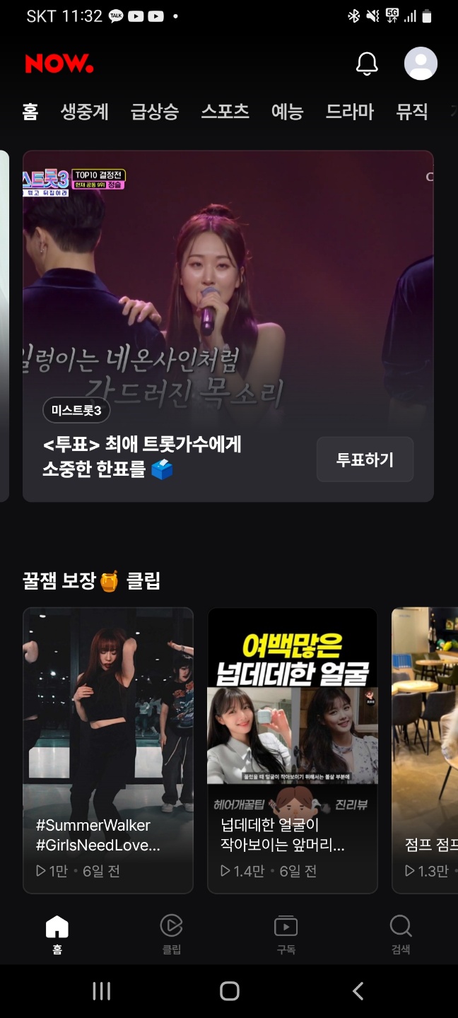 온라인 투표는 네이버 나우(NOW) 앱을 통해서 가능합니다. 먼저 앱을 다운 받아 접속 하신후에 메인 화면에 보이는 응원 투표 배너를 클릭합니다.
