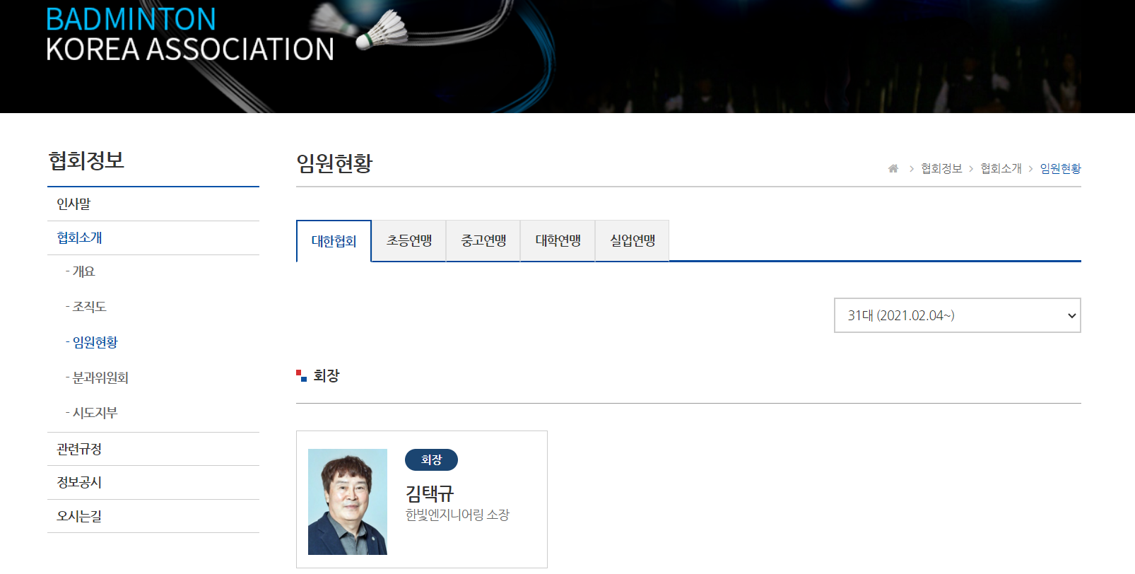 그런데 김택규 대한배드민턴협회 회장은 베일에 싸인 인물로, 출신 대학조차 불투명하며, 심지어 그의 직함조차 혼용되었습니다.