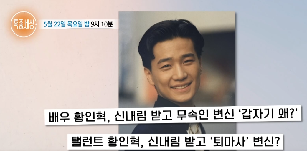 당시만 해도 대중들에게 친근한 이미지로 각인되어 있었고, 연기자로서의 미래가 밝아 보였습니다. 하지만 어느 순간부터 황인혁은 설명할 수 없는 신체적, 정신적 고통에 시달리게 되었습니다. 2025년 기준 53세의 나이로 알려져 있습니다.