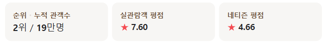 먼저, 평론가들의 평가는 상당히 냉혹합니다. 씨네21의 박평식 평론가는 "누더기 주워 입고 뒷북치며"라는 짧지만 강렬한 한 줄 평과 함께 별점 2.5점(5점 만점)을 매겼습니다.