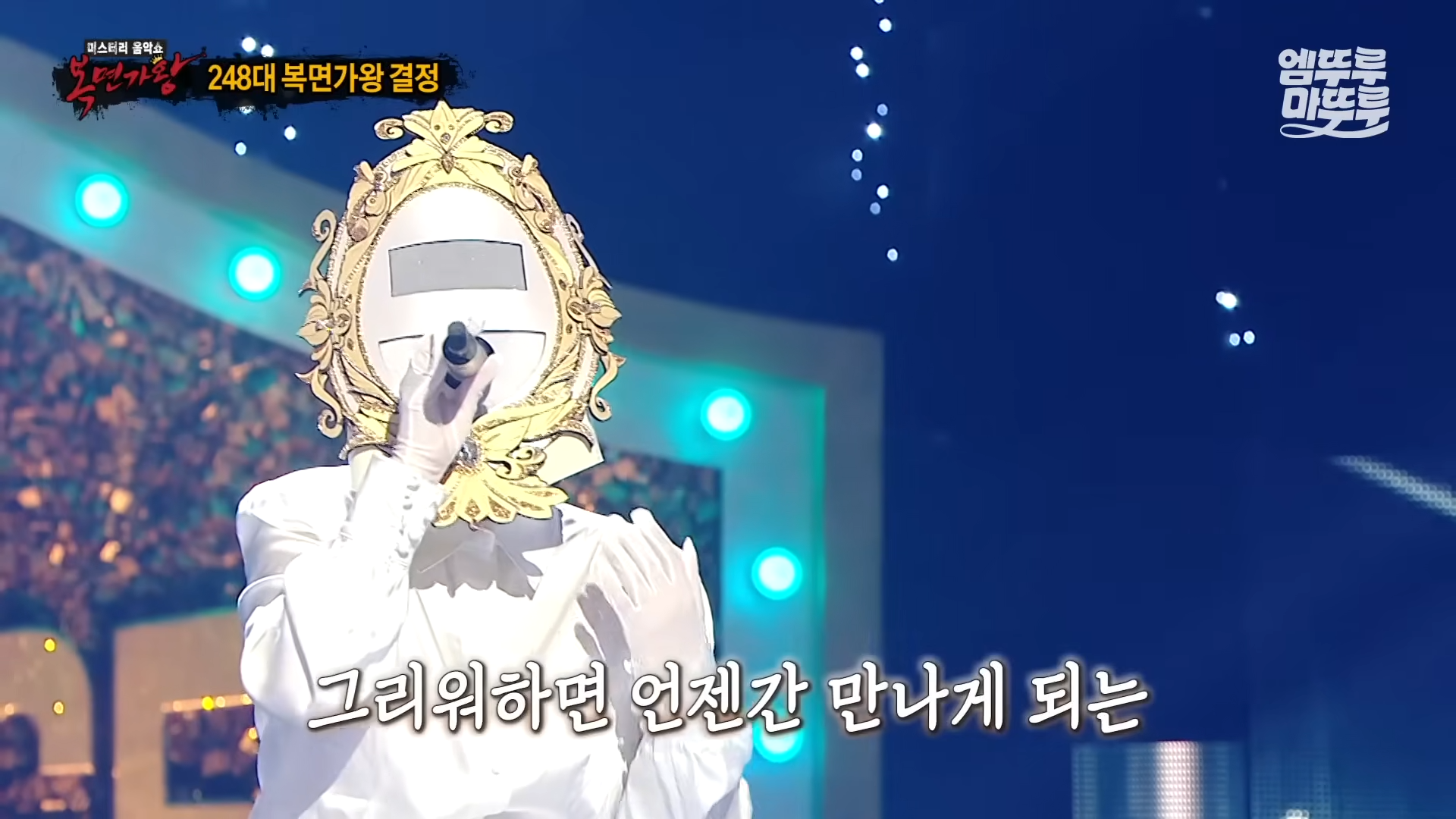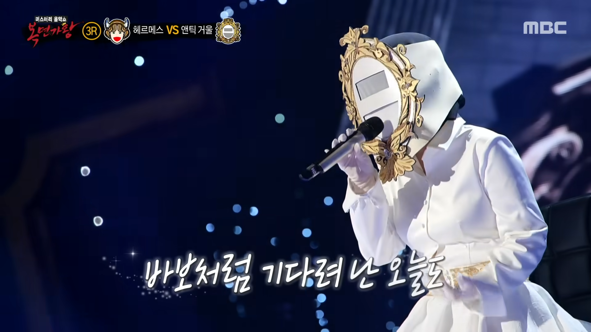 가왕 등극 후 ‘앤틱거울’은 첫 가왕 방어전 무대에서 폭발적인 고음과 청량한 음색을 자랑하며 판정단을 매료시켰습니다.