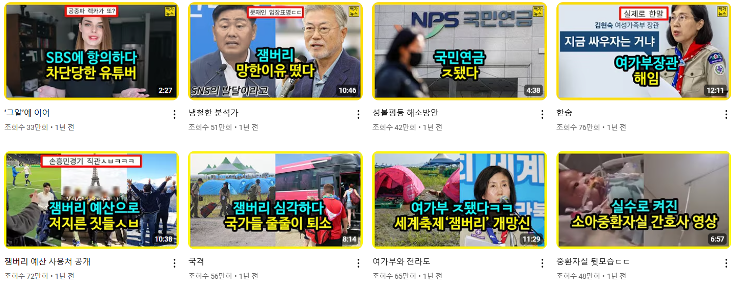 뻑가는 대한민국에서 활동하는 대표적인 우파 성향의 이슈 유튜버입니다. 사이버 렉카의 선두주자로 불리며, 보수주의, 우파, 안티페미니즘을 주요 콘텐츠로 다루고 있습니다.