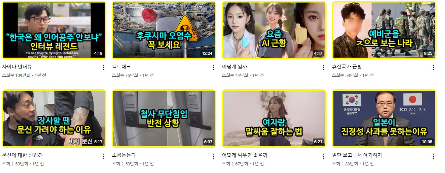 그의 영상들은 대중의 분노를 자극하는 방식으로 높은 조회수를 기록하며, 정치뿐만 아니라 연예, 스포츠 등 다양한 분야의 이슈를 다룹니다. 특히 유명인의 사생활과 관련된 자극적인 가십거리를 주요 소재로 활용합니다.