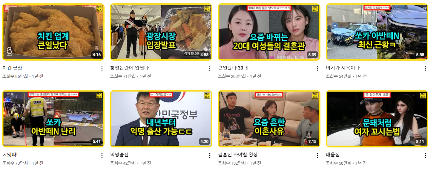 뻑가는 대한민국에서 활동하는 대표적인 우파 성향의 이슈 유튜버입니다. 사이버 렉카의 선두주자로 불리며, 보수주의, 우파, 안티페미니즘을 주요 콘텐츠로 다루고 있습니다.