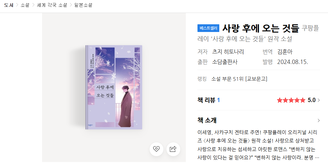 이번 포스팅에서는 쿠팡플레이 오리지널 드라마 사랑 후에 오는 것들을 소개해 드리고 또한 원작 책 내용도 함께 안내 드립니다.