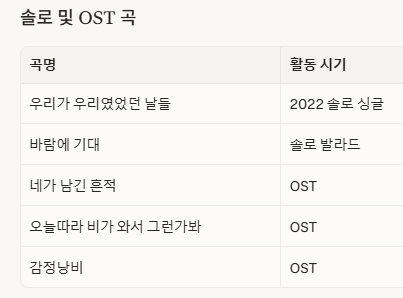 그러나 2016년도 갑상선 기능 항진증 진단을 받으면서 활동을 잠시 멈추고 치료와 회복에 집중해야 했습니다. 이후 건강을 회복한 뒤 2019년도 팀 활동에 다시 참여하며 팬들에게 반가운 모습을 보여주었습니다. 시간이 지나 2022년도에는 솔로 싱글 우리가 우리였었던 날들을 발표하며 감성적인 발라드 가수로서의 면모도 다시 한번 증명했습니다.