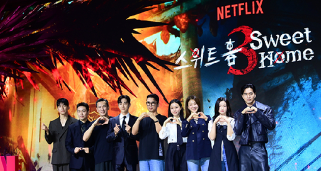이응복 감독은 "'스위트홈3'는 말 그대로 '컴 백 홈'이다. 집으로 돌아오는 이야기"라며 "시즌1, 시즌2 괴물화 사태로 흩어졌던 이들이 서로 조우하면서 벌어지는 이야기"라고 소개했습니다.
