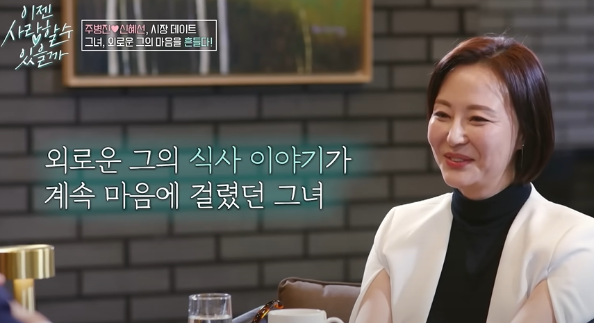 tvN STORY '이젠 사랑할 수 있을까'에서 주병진은 첫 번째 소개팅녀 최지인과의 만남 이후, 두 번째 소개팅녀 신혜선을 만났습니다. 신혜선은 호주 교포 출신의 변호사로, 첫 만남부터 주병진의 과거 속옷 광고를 언급하며 솔직하고 유쾌한 모습을 보여주었습니다.