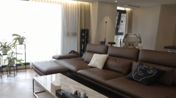 신혼집의 인테리어가 돋보이는데 붉은 조명과 화려한 돌핀 네온사인이 있는 홈 바, 호텔처럼 꾸며진 게스트 화장실, 남편 취향에 맞춘 올 블랙 화장실 등 개성 넘치는 공간으로 만들었습니다. 특히 심은진은 집들이 손님을 위해 실내화까지 준비하는 세심함을 보였습니다.