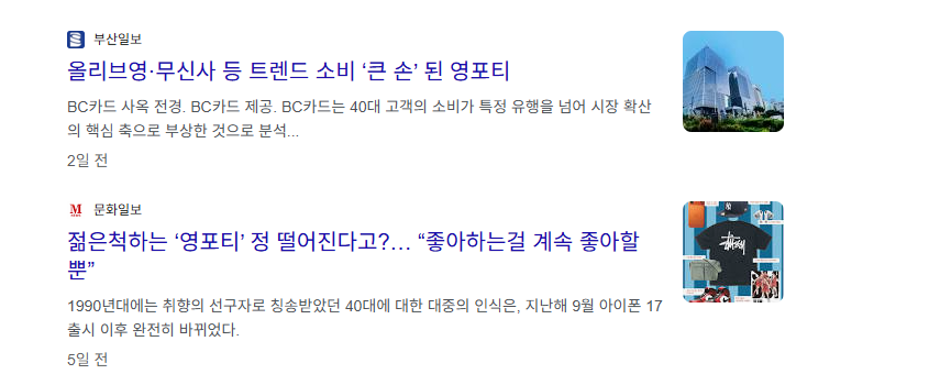 결국 영포티는 마케팅 목적에서 출발했지만 사회 현실을 충분히 반영하지 못해 오래 유지되지 못한 개념이었습니다. 그러다 2020년 전후로 전혀 다른 의미로 다시 등장하게 됩니다.