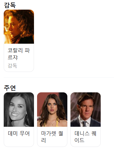 데미 무어 또한 극한의 감정 연기를 선보이며 촬영 중 대상포진에 걸리고 체중이 10kg이나 감소하는 등 어려움을 겪었지만, "모든 것을 쏟아부었다"라고 말할 정도로 열정적인 연기를 펼쳤습니다.