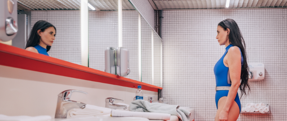 '서브스턴스'는 나이 든 여성에 대한 페미니스트적 관점을 제시하며, 여성의 신체에 대한 여성의 시각을 보여줍니다. 또한, 과장된 카메라 앵글을 통해 여성의 미에 대한 터무니없는 기준과 유명인의 파괴적인 힘을 비판하며, 관객들에게 거울을 비추듯 불편함을 선사합니다.