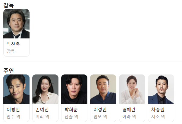 이 작품은 박찬욱 감독의 필모그래피 중에서도 상징적 장치와 미장센의 비중이 두드러집니다. 이전의 아가씨나 올드보이처럼 관객이 스토리만 따라가도 흐름을 이해할 수 있었던 작품과 달리, 이번 영화에서는 인물의 내면을 파악하기 위해 시각적 은유와 상징 해석이 필수적입니다.