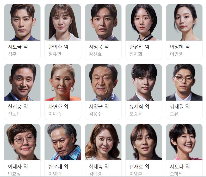 완벽한 결혼의 정석 출연진으로는 성훈, 정유민, 진지희, 강신효, 이민영님등이 출연하고 있습니다.