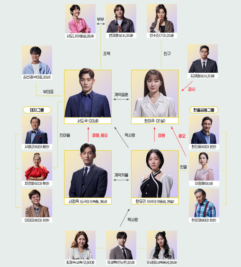 서도국열할은 배우 성훈님이 맡았으며 33세의 인테리어 플랫폼 회사 대표역할입니다. 한이주 역은 배우 정유민님이 맡았으며 31세의 화가역할입니다.