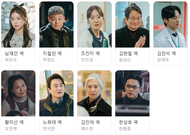 출연진도 화려합니다. 남자 주인공 역할은 배우 남궁민이 맡았습니다. 그는 이전 작품 천원짜리 변호사 이후 약 2년 7개월 만에 SBS 드라마에 복귀하였으며, 스토브리그와 천원짜리 변호사에 이어 세 번째로 SBS 금토 드라마에 출연하게 되었습니다. 그간 맡았던 작품마다 흥행 불패 신화를 이어오던 남궁민이기에 이번 작품에서 보여줄 새로운 연기와 변신에 많은 기대가 쏠렸습니다.