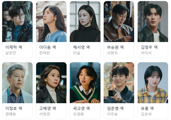 여주인공 역할은 배우 전여빈이 맡았으며, 그녀는 이번 드라마를 통해 SBS 작품에 첫 출연하게 되었습니다. 또한 서현우, 이설 등도 출연하여 극에 무게감과 깊이를 더하고 있습니다. 이 중 이설과 서이서 역시 이번이 SBS 드라마 첫 출연입니다.