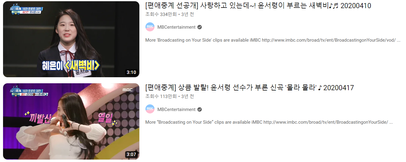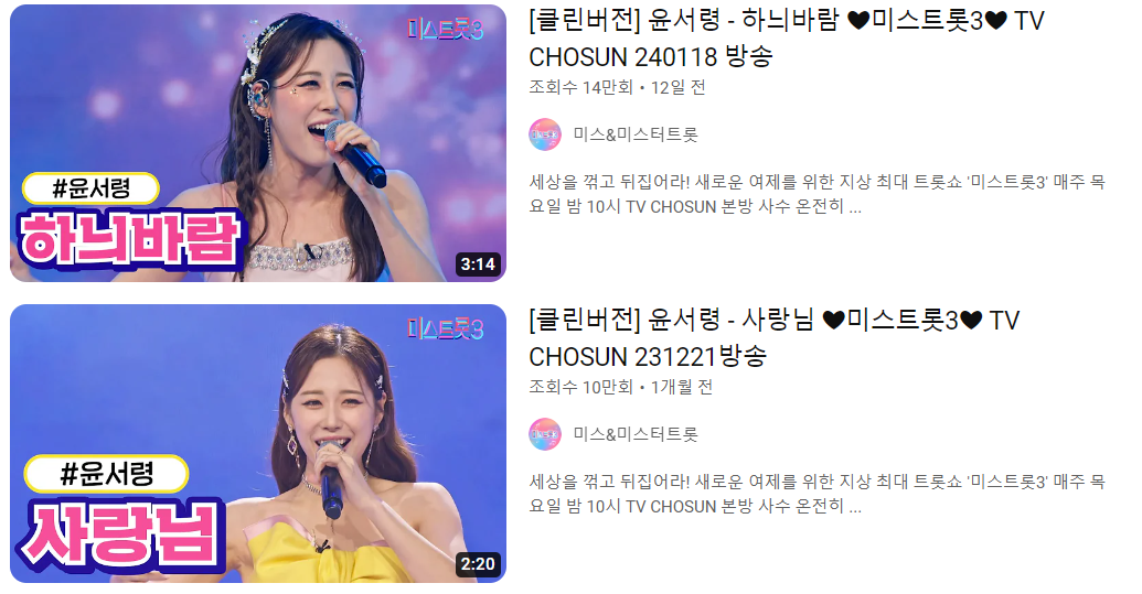 현재 방송이 진행중이지만 과거부터 지금까지 꾸준히 좋은 활약을 펼쳐온 윤서령 가수의 노래실력은 이미 검증되었다는 평가를 받습니다.