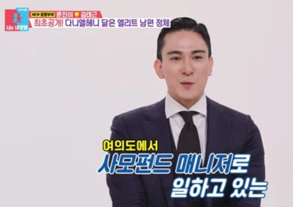 이 프로그램에서 윤진이의 남편은 깔끔한 집안 관리와 가족을 생각하는 마음 씀씀이로 훈훈한 면모를 보여주며 많은 사람들의 주목을 받았습니다. 윤진이는 남편에 대해 "현실 속 신사"라고 애정을 드러내며, 김태근 씨는 금융업에서 사모펀드 매니저로 일하고 있습니다.