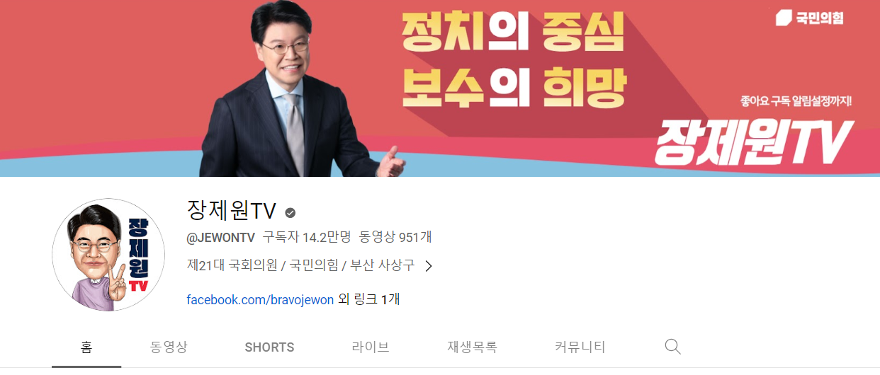 그리고 구독자 14만명을 넘긴 유튜브 채널 장제원 TV을 운영하고 있습니다.